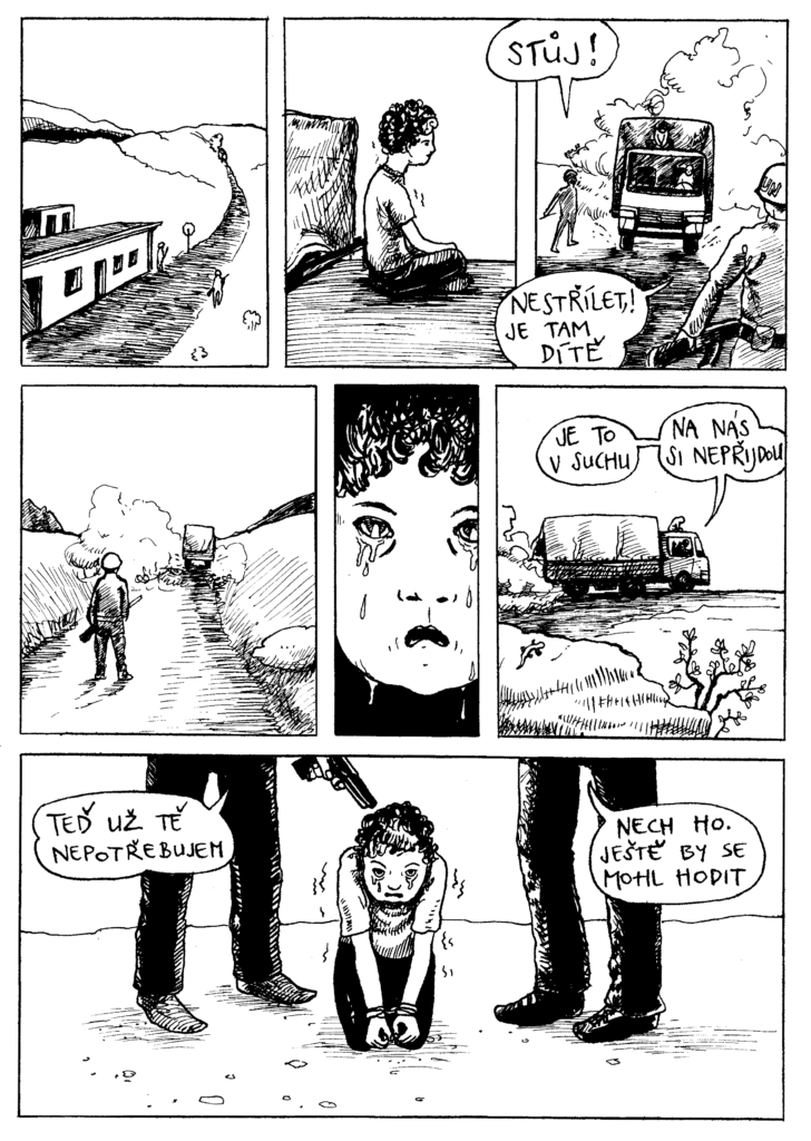 Série devíti komiksů na různá lidskoprávní témata. Tento komiks je o využívání dítěte jako lidského štítu a odhození či zabití jej, když už se jim nehodí.